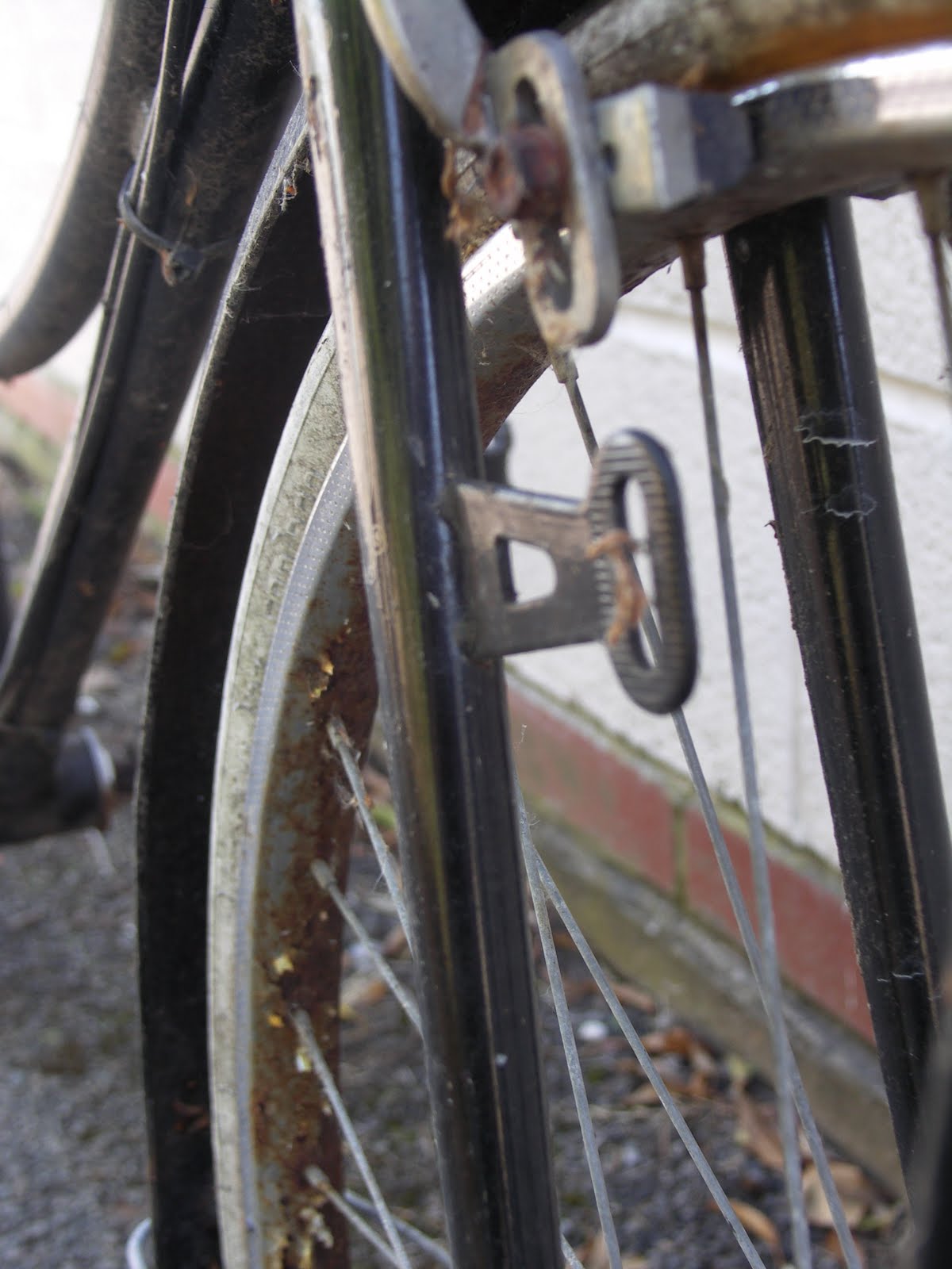 To be honest, at £20 I wasn't expecting very much, a further conversation with the owner revealed that since getting a puncture last year it had lived outside( through the winter) leaning on a woodpile waiting for someone to fix it. Anyway, when i picked it up it looked like this: